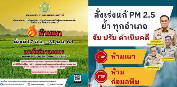 หยุดเผา = หยุดฝุ่น จังหวัดร้อยเอ็ด หยุดเผาหรือก่อมลพิษ ฝ่าฝืนมีโทษตามกฎหมาย
